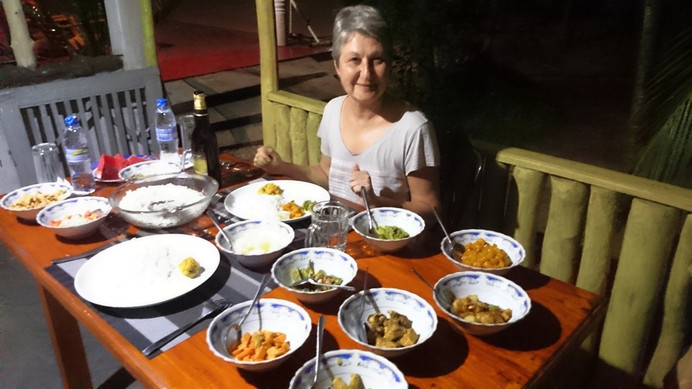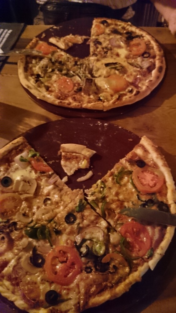 Nach 4 Wochen Reis mit Curry oder Gemüse-Nudeln, teilweise auch zum Frühstück ( Sri Lanka Breakfast ) gönnten wir uns heute …. eine Pizza! Lecker!!