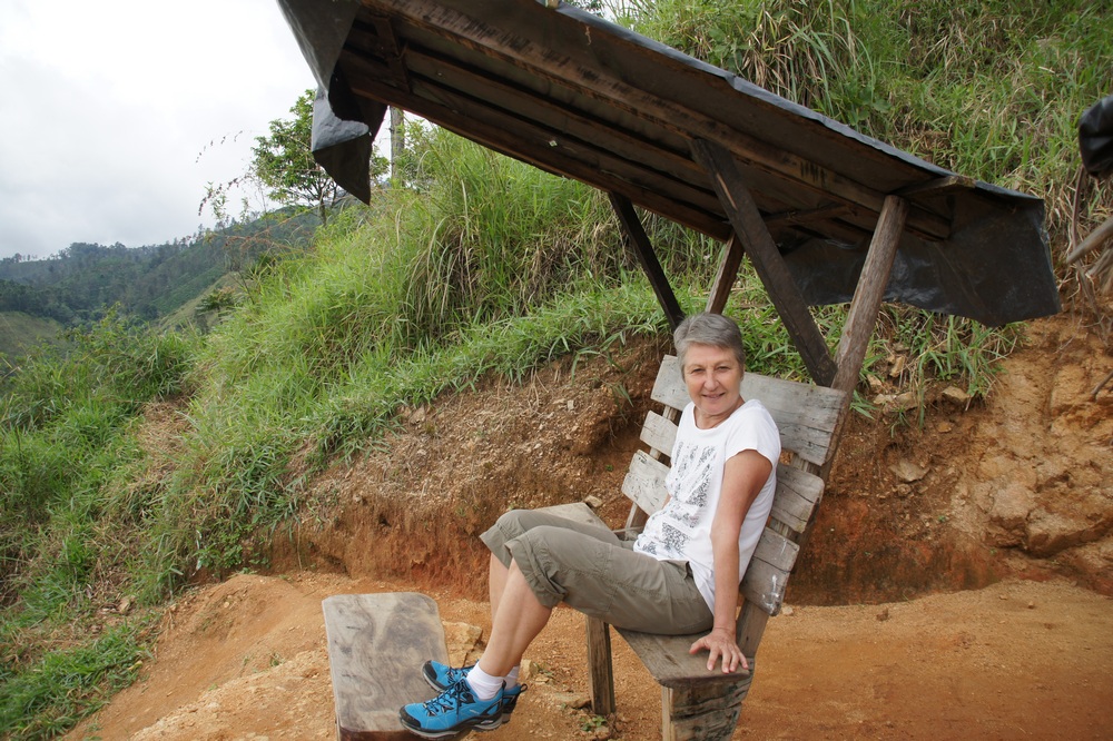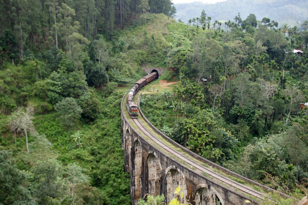 Heute war es bewölkt. Wir marschierten zur 9-Bogen-Brücke. Der Weg war nicht leicht zu finden, aber natürlich war ein Junge zur Stelle, der uns führte. Der Weg endete auf einem Hügel, von dem aus hatten wir einen schönen Blick auf die Brücke. Der Zug kam erst in einer Stunde, die Wartezeit wurde uns aber mit 3 Münchnern und den Brüdern des Jungen nicht zu lang. Der Vater der Jungs versorgte uns mit frisch gebackenen kleinen Pfannkuchen und einer scharfen Soße und Bananen. Der Zug hatte Verspätung und wir warteten noch ein bisschen – fast eine Stunde. Irgendwann war’s auch uns genug und wir waren schon am Gehen, da hörten wir den Zug pfeifen. Also zurück um die perfekten Fotos zu schießen. Den Rückweg machten wir die Gleise entlang nach Ella. Nachdem anscheinend vor ein paar Tagen dort ein Überfall war, hatten wir eine Anzahl von Polizisten auf der Strecke zur Bewachung.