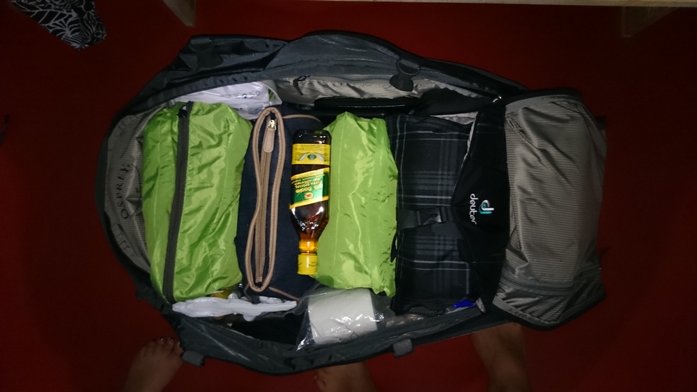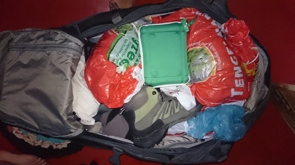 Ich kann nur sagen , nach 2 Stunden sortieren und neu packen, siehe 3. Foto, hätte ich meinen Rucksack fast genauso hin gebracht. Daggi hat die ersten Tage immer zu mir gesagt, der geht nie zu! Manchmal hatte ich auch meine Zweifel, aber Gott sei Dank , kaufte ich den größeren Rucksack. Meine Plastiktüten sind alle beschriftet, also mit System gepackt. Der Rucksacktrolly war die beste Entscheidung, macht das Transportieren leichter.
