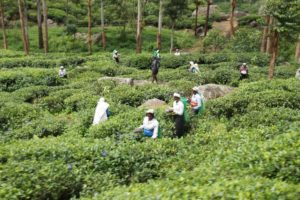 Unser Zug kam sogar pünktlich, unsere Fahrt ging nach Nuwara Elia. Durch Teeplantagen, an vielen Gemüsefeldern vorbei. Und über Pässe, da hingen die Wolken bis runter und es regnete. In Nanu Oya mussten wir aussteigen und sofort war ein Tuktukfahrer zur Stelle und empfahl uns ein Hotel. Er brachte uns zu einem 150Jahre alten englischen Haus mit großen, hohen Zimmern mit Kamin. Der Ort an sich hat uns garnicht gefallen, vielleicht auch weil es regnete und wir nichts Gscheits zum Essen fanden. Am nächsten Tag sahen wir uns den Ort nach einer Wanderung durch Teeplantagen zu einem Tempel am Hügel nochmal an. Er wurde nicht netter, einige kleine, überdachte Märkte, viele Wine-Stores mit betrunkenen Männern davor. Wir wollten uns bei einem Friseur die Haare schneiden lassen. Der Laden war vielleicht 6qm groß. Ein Mann saß schon auf dem einzigen Stuhl zum Färben seiner Haare, aber wir sollten unbedingt vor ihm dran kommen. Tomi war der Erste, mit der Maschine mit 4 verschiedenen Aufsätzen. Und zum Anschluss wurden noch die Augenbrauen rasiert!! Die Kosten für dieses Vergnügen betrugen für uns Beide mit Trinkgeld 5,40€