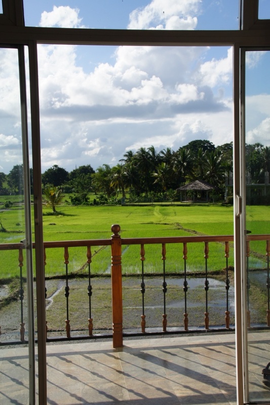 Wir ließen uns durch den Regen nicht abschrecken und fuhren ca. 50km östlich nach Polonnaruwa. Und fanden ein kleines Hotel mit gigantischen Ausblick aus unserem Zimmer im 1. Stock. Untertags genossen wir die herrliche Ruhe, nachts hatten wir ein gigantisches Froschkonzert!