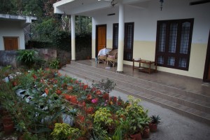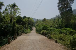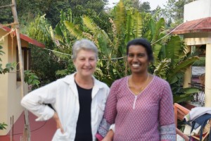 Kumily: liegt auf 1000m. Die Grenze der Bundesstaaten Tamil Nadu und Kerala geht durch den Ort. Es gibt eine Schranke und die Busse aus Tamil Nadu dürfen nicht weiter fahren. Die Temperaturen sind sehr angenehm, tagsüber warm, man kann mit T-Shirt gehen und nachts kühl. Wir wohnen bei einer sehr netten Familie. Das angebaute Haus mit zwei Zimmern zum Vermieten ist erst ein halbes Jahr alt. Unser Zimmer ist hell, groß und sauber. In ihrem alten Haus im Wohnzimmer bekamen wir ein ausgezeichnetes indisches Frühstück. Das war Reis, kleine Fladen oder Nudeln mit Gemüsesoße – ein bisschen scharf. Und Kaffee dazu. Und Bananen.