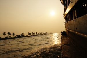 Backwater: bei den backwaters handelt es sich um ein weit verzweigtes Netz von malerischen Lagunen,Seen und flachen Schwemmland, welches sich zwischen Kollam im Süden, Kochi im Norden und Kottayam im Osten erstreckt.Die Backwaters umfassen 29 größere Seen und Lagunen, 44 Flüsse sowie insgesamt rund 1500 Kilometer lange Kanäle und natürliche Wasserstraßen. Die backwaters werden intensiv landwirtschaftlich genutzt. Kokospalmen, Kautschuk, Reis und Cashewbäume sind die wichtigsten Anbaupflanzen. Die Fähren sind ein öffentliches Verkehrsmittel. Die backwaters sind natürlich auch touristisch erschlossen, man kann Tagestouren mit den Boot oder eine Tour über Nacht mit den Hausboot unternehmen.