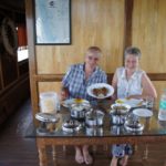 Und hier sind ein paar Preise. Diese 6Stunden Busfahrt kostet z.B. 2,40€ für uns beide! Eine große Portion Nudeln mit Gemüse am Straßenrand bekommen wir für 0,58€. Ein Glas Tee für 0,14€. In einem Restaurant für 2 Portionen Gemüsereis und zwei Cola zahlen wir zwischen 3,50€ und 5,30€. Ananas kostet das Stück 0,80€. Das sind schon tolle Preise für uns.