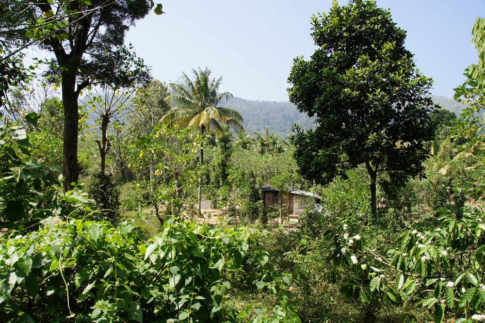 Eine kleine Wanderung führte uns am Rand des Naturschutzparks durch eine dschungelähnliche Gegend, dazwischen kleine Häuschen der Kaffee- und Pfefferpflücker.