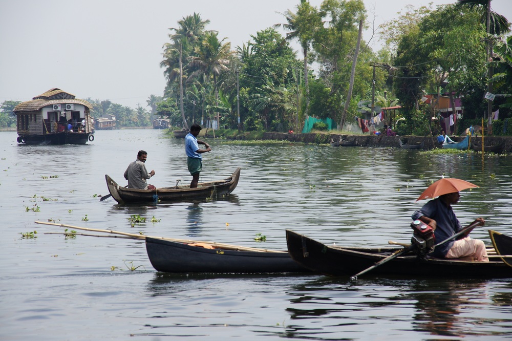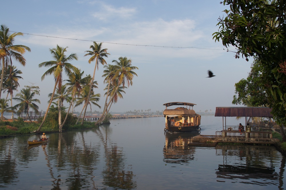 Backwater: bei den backwaters handelt es sich um ein weit verzweigtes Netz von malerischen Lagunen,Seen und flachen Schwemmland, welches sich zwischen Kollam im Süden, Kochi im Norden und Kottayam im Osten erstreckt.Die Backwaters umfassen 29 größere Seen und Lagunen, 44 Flüsse sowie insgesamt rund 1500 Kilometer lange Kanäle und natürliche Wasserstraßen. Die backwaters werden intensiv landwirtschaftlich genutzt. Kokospalmen, Kautschuk, Reis und Cashewbäume sind die wichtigsten Anbaupflanzen. Die Fähren sind ein öffentliches Verkehrsmittel. Die backwaters sind natürlich auch touristisch erschlossen, man kann Tagestouren mit den Boot oder eine Tour über Nacht mit den Hausboot unternehmen.