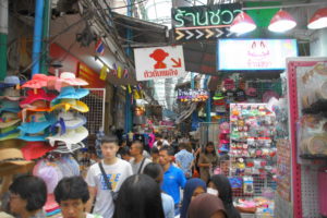Mit dem Expressboot für 80 Cent nach Chinatown. Durchgeschwitzt ist man bereits nach 5 Minuten. Die Märkte sind bunt und voller Plastik.