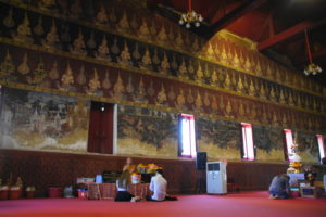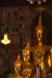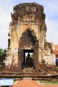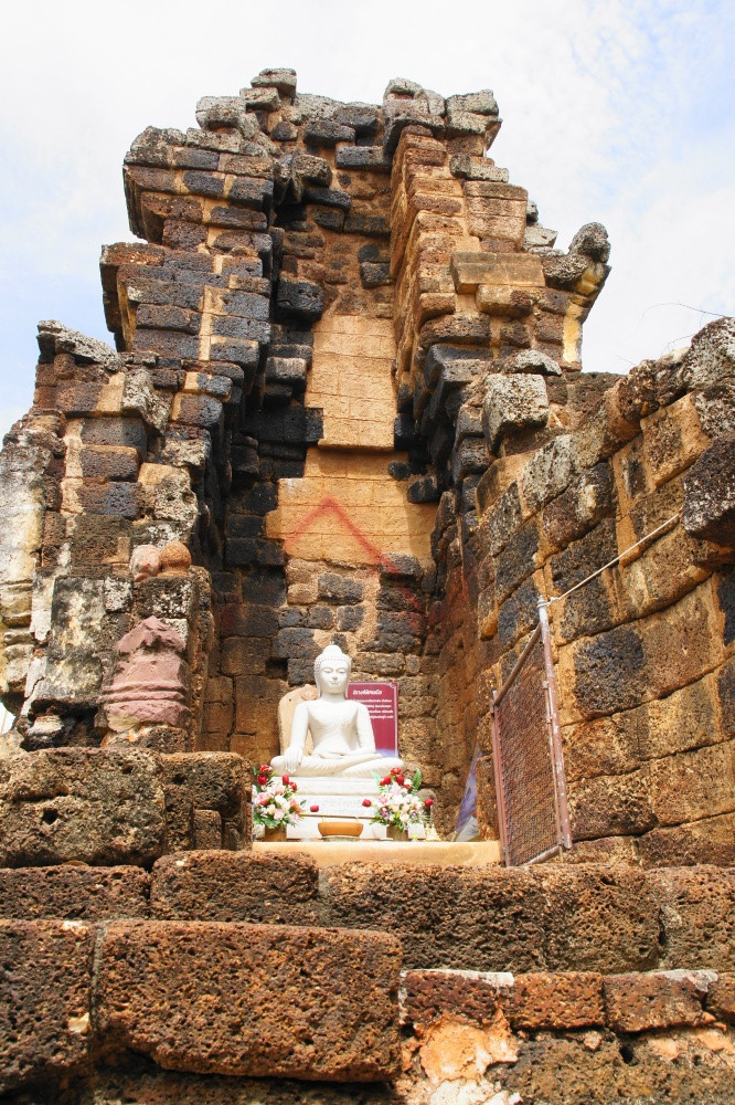 Gestern Abend hat’s noch stark geregnet und heute ist es bewölkt, aber besonders schwül und drückend. Trotzdem schwingen wir uns auf die Radln, denn es gibt noch ein paar Tempel zu besichtigen. Zuerst den Wat KamphaengLaeng aus dem 14.Jh.