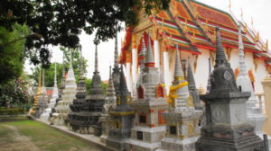 Dann fanden wir eine Tempelanlage, die in unserem Stadtplan garnicht eingezeichnet war. Ein wunderschön angelegter Garten und viele Stupas, das sind Grabsteine.
