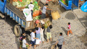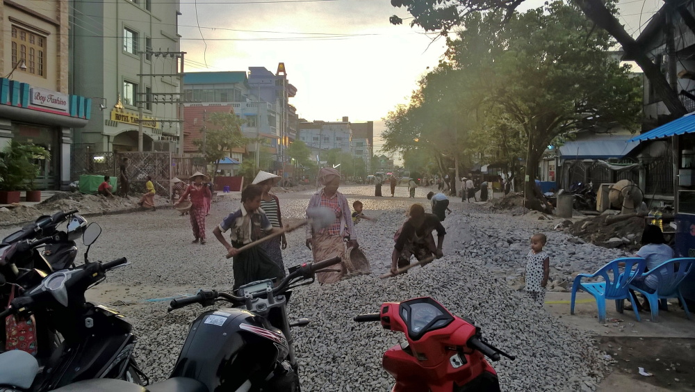 Vor unserem Hotel ist Straßenbaustelle. Auf der schuften Kinder, die ca. 12-13 Jahre alt sind. Sie schaufeln Splitt in einen Korb und verteilen den dann auf dem Teer.