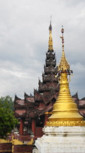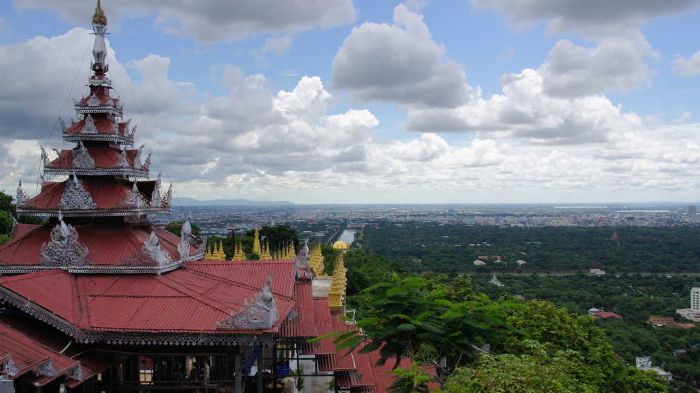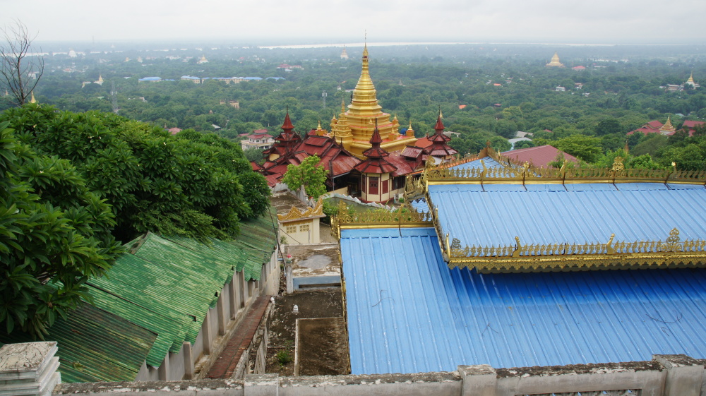 Weiter ging’s zum Mandalay Hill, die 240m ließen wir uns mit dem Taxi hochfahren, runter ging’s zu Fuß. Überall auf dem Treppenweg nach unten waren Essens- und Verkaufsstände, bei denen die Leute teilweise auch wohnten. Alles sehr düster, dreckig und verkommen.