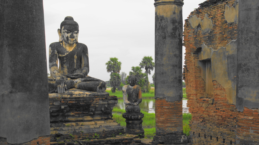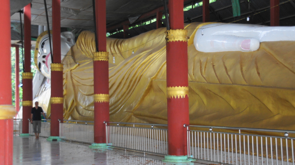 2. Station: Amarapura – Tempel mit riesigem liegendem Buddha und einem kleinen stehenden davor