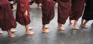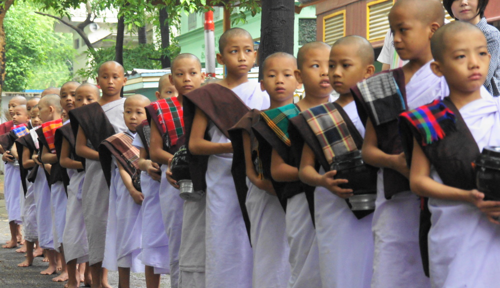 3. Station: Amarapura – das Mahagandayon Kloster . 1200 Mönchen leben und studieren dort. Gegen 10 Uhr treffen sich alle in langen Reihen und nehmen ihre Mahlzeit ein.