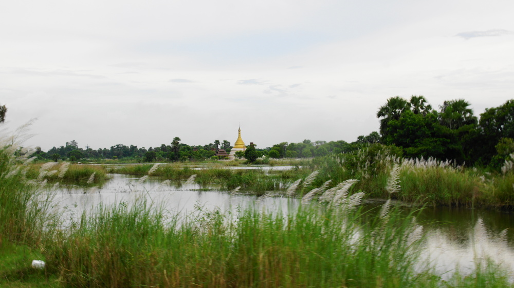 4. Station: Sagaing. Pagoden, Pagoden, Pagoden. Wir steigen den Hügel hinauf und von der Ponnya Shin Pagode haben wir einen schönen Blick auf die Stadt und das Umland.