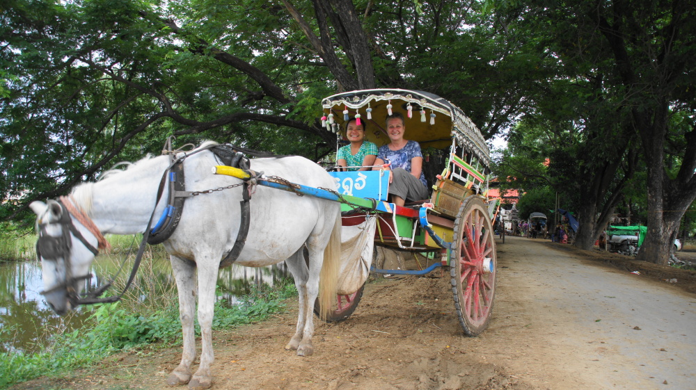 5. Station: Mit dem Boot auf eine künstliche Insel, auf der 1364 die damalige Hauptstadt In-Wa gegründet wurde. Mit der Pferdekutsche wurden wir von einem jungen Mädchen, mit der wir viel zu lachen hatten, zu einigen Sehenswürdigkeiten gefahren. Nach 10 Minuten war es Tomi schon schlecht und eine halbe Stunde später musste er seine Rippen neu sortieren, so ein Geschaukel.