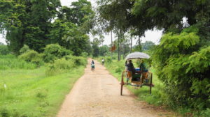 Nachts hat es geregnet, morgens war es bedeckt und schwül. Wir mieteten uns ein Radl und fuhren zum Königspalast, eine große Anlage mit einer 3m dicken, umlaufenden Mauer, und einen 6 1/2m breiten Wassergraben hat.