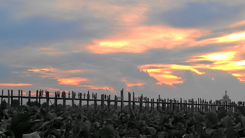 6. Station: Zum Schluss kamen wir zur der U-Bein-Brücke. Sie ist 150 Jahre alt und mit 1200m die längste Teakholzbrücke der Welt. Wir teilten uns mit einem deutschen, jungen Pärchen ein Boot und konnten von dort aus den Sonnenuntergang genießen.