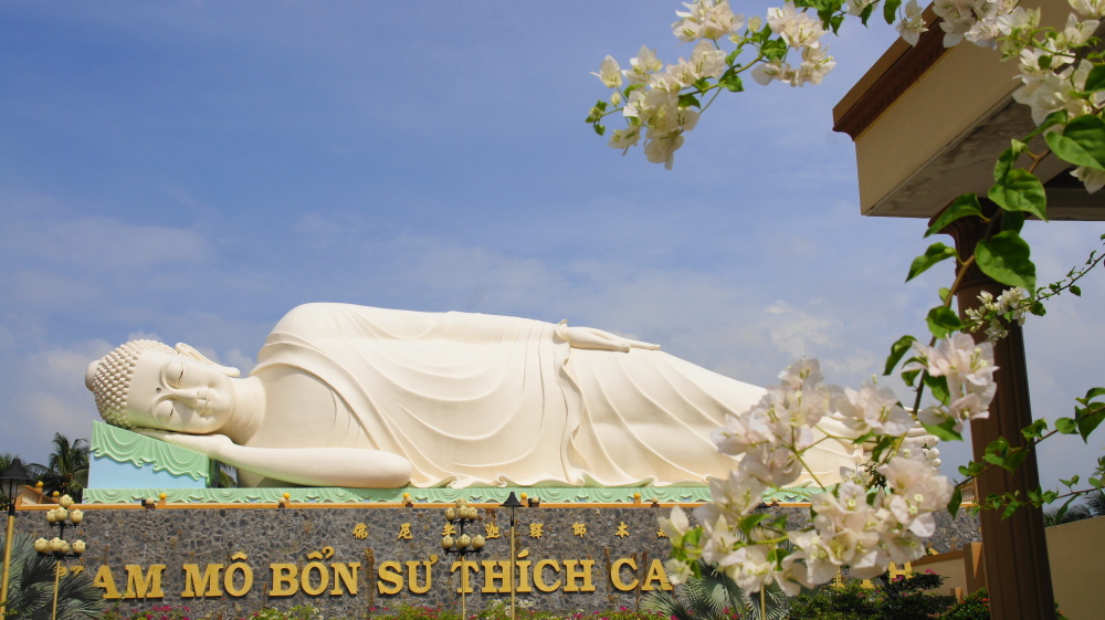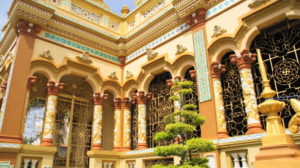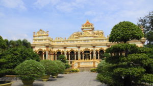 Ein großer Reisebus, viele Vietnamesen, einige Russen, ein paar Australier und wir, die einzigen Deutschen. Im Stau aus der Stadt raus, einmal den Bus gewechselt und dann in die Gegend von Ben Tre. Dort besichtigen wir einen Tempel, wir haben 25 Minuten Zeit.