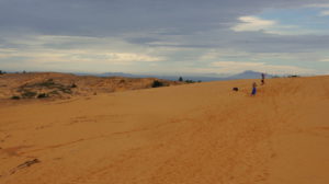 Mit dem Roller düsen wir zu den weißen Dünen. Leider ist es bewölkt. Aber wir sind fast alleine und können den Ausblick in Ruhe genießen. Auf der Strecke werden wir von der Polizei gestoppt. Sie wollen den internationalen Führerschein sehen. Wir sind darauf vorbereitet, ein Ossipaar am Strand hat uns davon erzählt. Ansonsten hätte es 500.000 Dong, das sind 25€, gekostet.