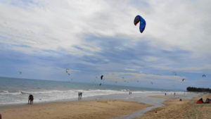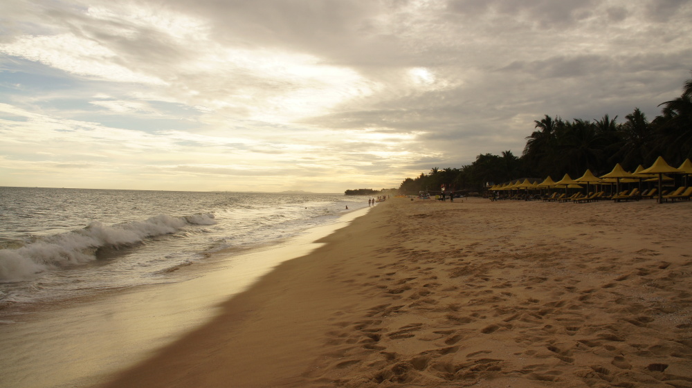 Mit einem Taxi, das die Busagentur bezahlte, werden wir zum Busbahnhof gebracht. Und da sehen wir, dass die Stecke grad mal 1€ kostete!!! Mit einem Liegebus, ich find’s bequem, Tomi bekommt fast Zustände, erreichen wir am Nachmittag Mui Ne. Ein kleiner Ort an der Ostküste, schöner Strand, viel Wind und hohe Wellen. Leider fest in russischer Hand, aber unser Hotel ist sehr nett. Ein kleiner Bungalow, schöner Garten mit Pool und ganz gutes Frühstück. Und nette Nachbarn. Conni, eine nach Berlin ausgewanderte Bayerin und ihr Mann Michael, ein echter Berliner.