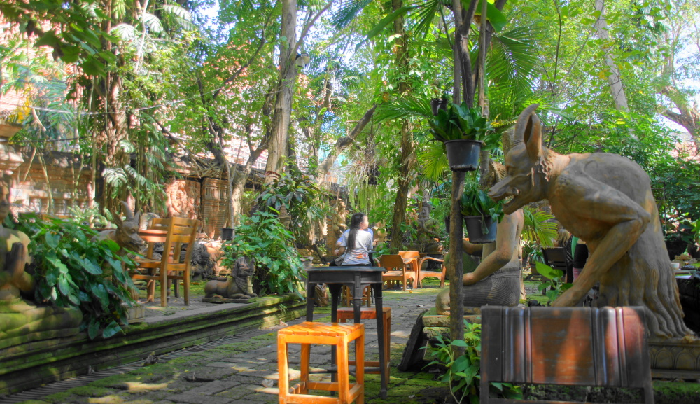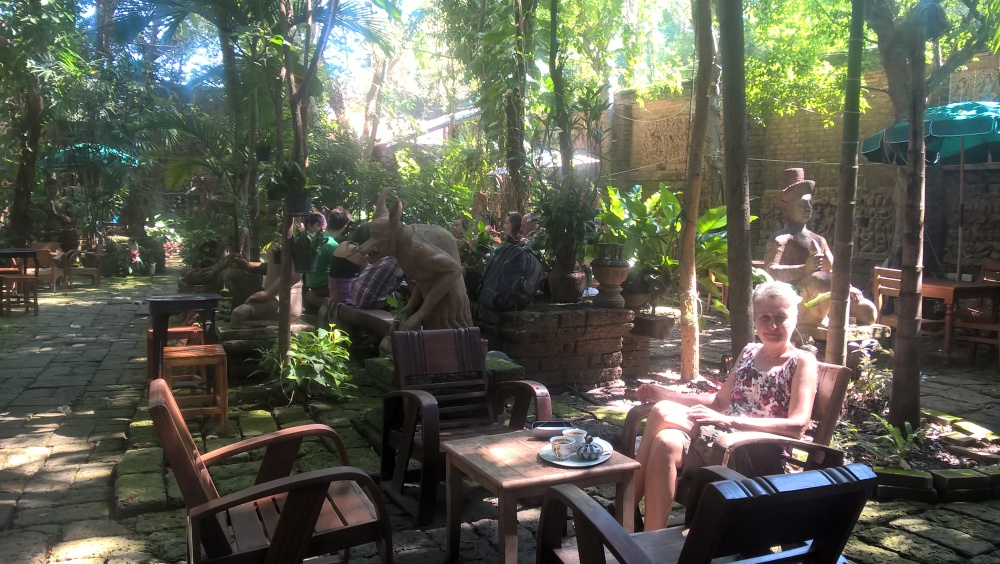 Wir finden zum Terrakottagarten, eine Oase in der Stadt. Üppig grün, überall Terrakottafiguren, die Mauern mit Reliefs und alles durch die Feuchtigkeit bemoost. Richtig mystisch. Es gibt einen guten Kaffee und wir sitzen lang und genießen.