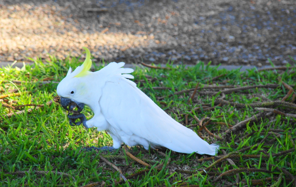 Der Platz hat eine große Küche mit Gasofen und Gasgrill. Wir brauchen unseren Kocher garnicht auspacken, das ist praktisch. Abends kommen Schwärme von weißen Kakadus und machen einen gewaltigen Lärm. Es gibt auch kleine grüne und schöne, bunte Papageien.