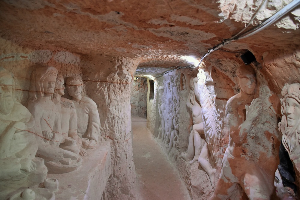 Es hat 37Grad. Und kaum ein Lüftchen. Trotzdem fahren wir vormittags zu einer Mine, die man besichtigen kann. Es geht jede Menge Stufen hinunter, gebaut für die Touristen. Normalerweise ist der Einstieg ein tiefer Schacht, Durchmesser ungefähr 1,50m. Es ist angenehm kühl, leider ist die Mine nicht mehr benutzt und die Wände sind mit Figuren etwas kitschig gestaltet. Aber man hat trotzdem eine Vorstellung, wie früher gearbeitet wurde.