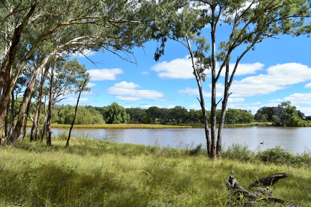 Heute war eine eiskalte Nacht, aber der Tag ist herrlich, die Sonne scheint und wir machen eine Wanderung zum Inverell-See und eine große Runde durch den Eukalyptuswald. Es ist ein markierter Wanderweg und teilweise sehr batzig. Wir sehen nur 2 Kängurus, keinen Schnabeligel oder sonstiges Getier.