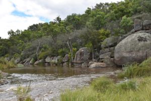 Heute geht’s bei Sonnenschein weiter, wir kommen durch eine schöne Gegend mit großen Steinen. Hin und wieder sind die Straßen überflutet, aber das ist für uns ein Kinderspiel.