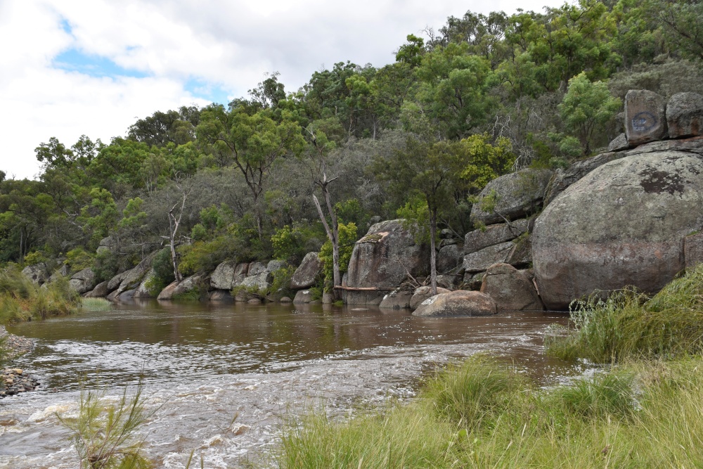 Es regnet, seit wir in Bingara losgefahren sind. Es geht durch eine bergige Gegend, wäre ganz schön, aber bei dem Wetter wollen wir nicht mal aussteigen zum fotografieren. Am Copeton Staudamm machen wir Pause, überlegen, ob wir hier in dem Naturschutzgebiet auf dem Campingplatz bleiben.