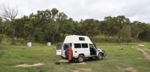 Aber wir entschließen uns, doch weiter bis Inverell zu fahren. Dort fragen wir im ersten Autozubehörladen wegen der Batterien nach. Der Mann verweist uns an einen Autoelektriker, der seine Werkstatt direkt dahinter hat. Es ist ein netter, junger Mann, der sich gleich Zeit für uns nimmt. Es stellt sich heraus, dass das Relais, das zwischen die zwei Batterien gehört, um sie zu trennen, zwar vorhanden ist, aber kaputt. Die zwei Batterien wurden einfach mit einem Kabel verbunden und deshalb saugte die 2. Batterie die erste leer. Er baut uns ein neues Relais ein, bringt die ganzen Kabel in Ordnung und will dann nur 70€ von uns. Jetzt ist wieder alles bestens, die Starterbatterie wird nicht leergesaugt und wir brauchen keine Angst mehr haben, dass das Auto nicht anspringt. Wir gehen einkaufen und wollen auf einen Campingplatz im Ort. Leider können wir dort nicht bleiben, er liegt am Fluss und es gibt Hochwasser. So fahren wir zu einem anderen, er liegt trocken, ist aber nicht besonders schön. Zum Abendessen will Tomi unbedingt eine Pizza und nachdem es keinen Backofen gibt, macht er sie auf der Grillplatte. Aber es hat funktioniert.