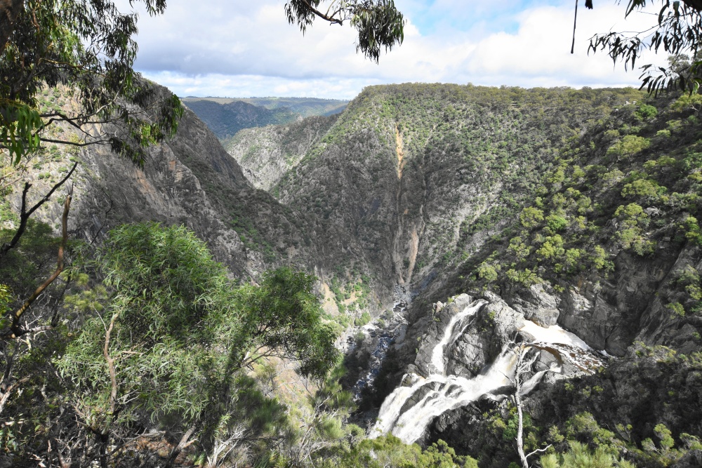 Wir kommen durch Armindale und fahren bis zum Wollomombi-Nationalpark. Da gibt es einen Stellplatz, wieder mit Plumpsklo, aber total ruhig. Von dort aus kann man einen kurzen Spaziergang zur Schlucht machen und hat einen tollen Ausblick.