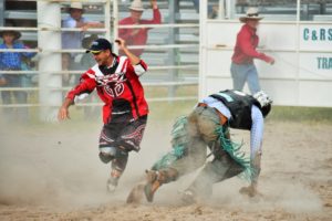Unfaßbare Fotos!!! Die (Fotos) verdienen einen/mehrere Preise! Echt gewaltig. Die bockenden, steigenden Pferde, die wilde Kuh, der Sattel, der unter’s Pferd gerutscht ist, die fallenden, kämpfenden Cowboys! Der Waaaahnsin! Crazy Aussies.