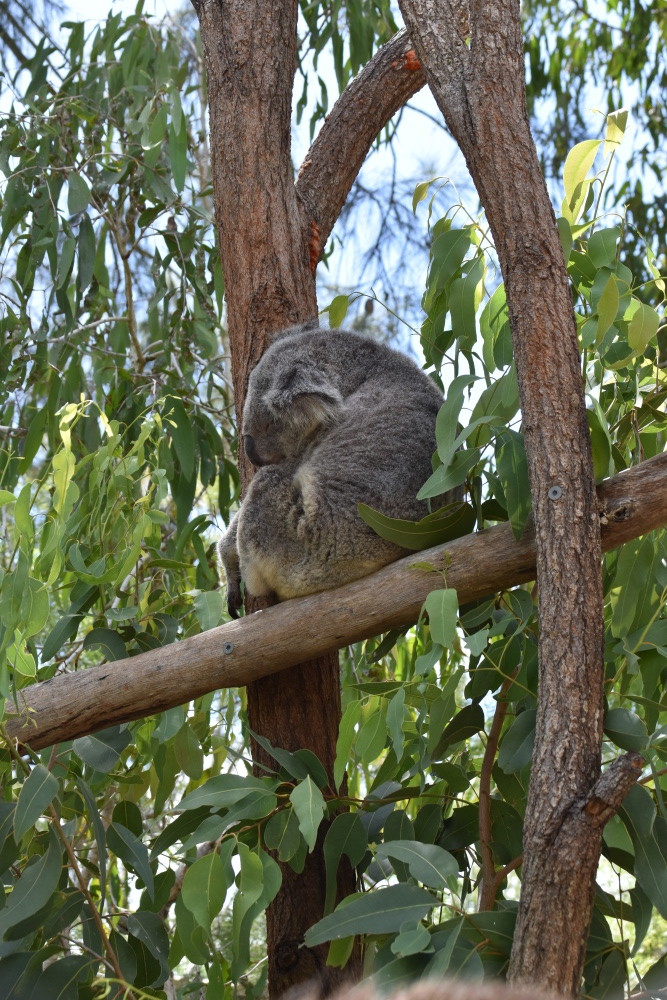 Heute bringen wir wirklich eine große Strecke hinter uns, erst geht es bis Rockhampton. Dort gibt es einen großen Park und einige Tiergehege. Und wir sehen unseren ersten Koala! Leider nicht in der freien Wildbahn, aber so können wir ihn ganz nah betrachten.