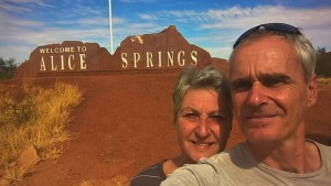 Alice Springs: Liegt nahe dem geographischen Mittelpunkt Australiens. Mitten im Outback, ungefähr 1500km von allen anderen großen Städten entfernt. Die Versorgung war anfangs nur durch Kamelkarawanen möglich. Seit etwa 1920 kamen Lastwagen dazu. Seit 1980 gibt es die normalspurige Eisenbahn nach Port Augusta und seit 2004  nach Darwin. Eine Kleinstadt, 27.000Einwohner, davon 20% Aborigines. Davon lungern viele an den Plätzen und Ecken herum, sie machen immer einen grimmigen Eindruck. Hier gibt es ein Einkaufszentrum und eine Fußgängerzone. Wir können bei Coles und Woolworth einkaufen.
