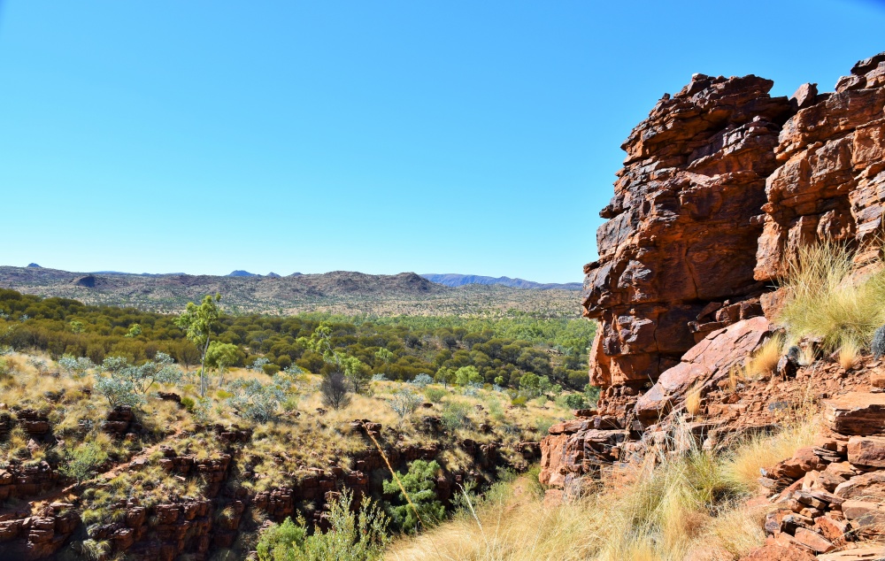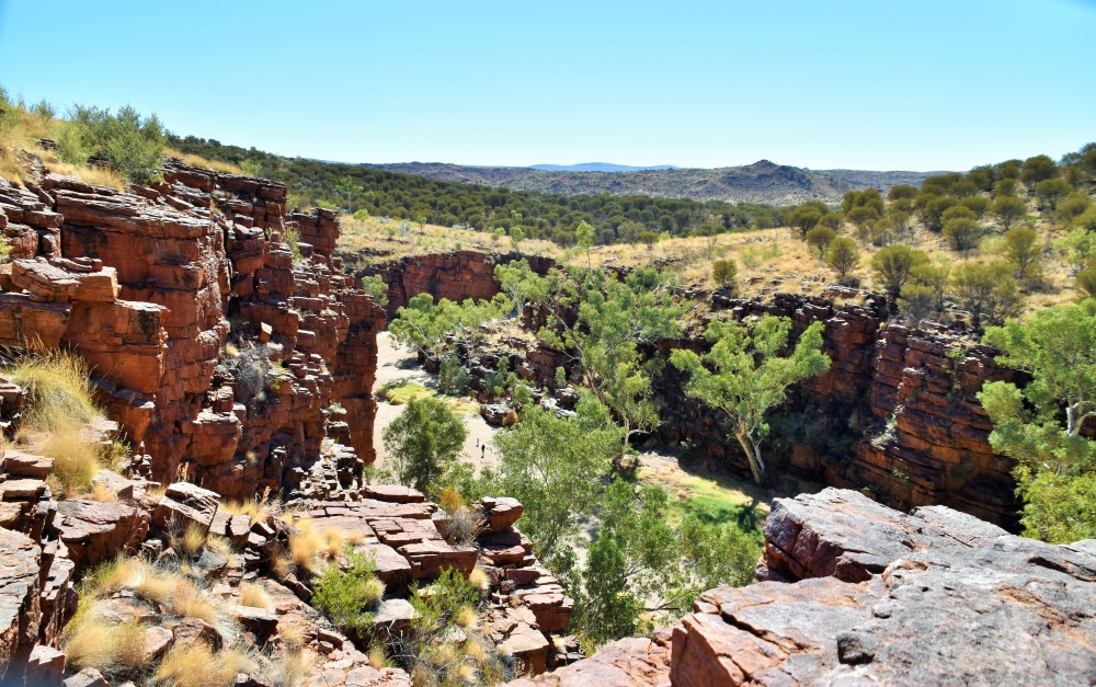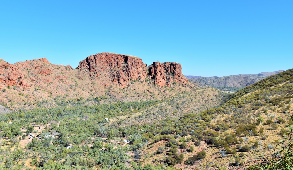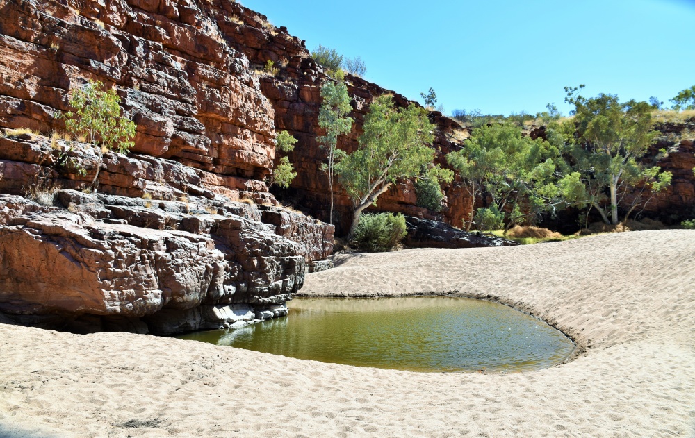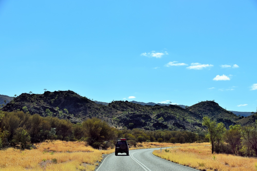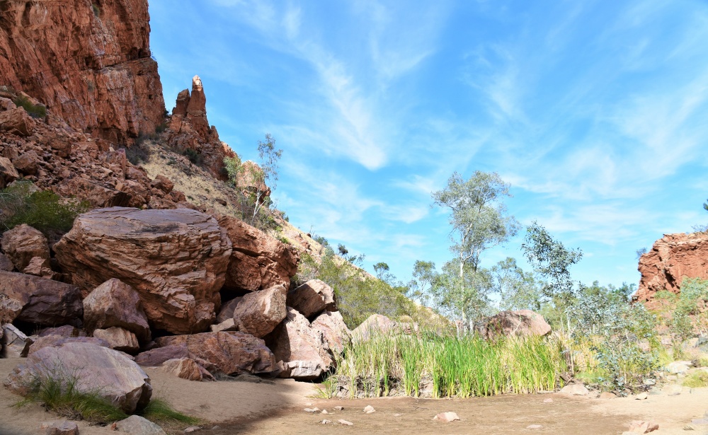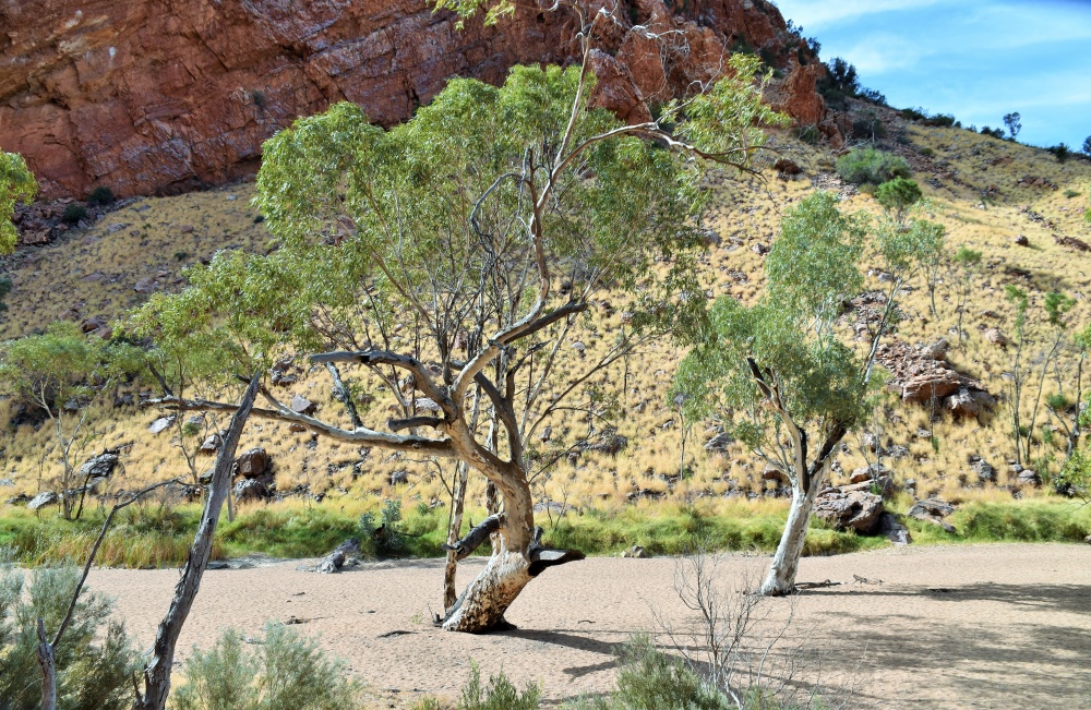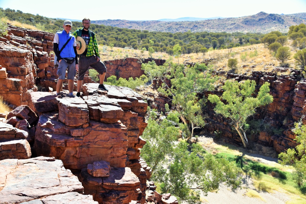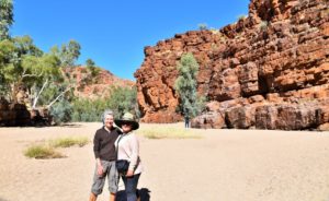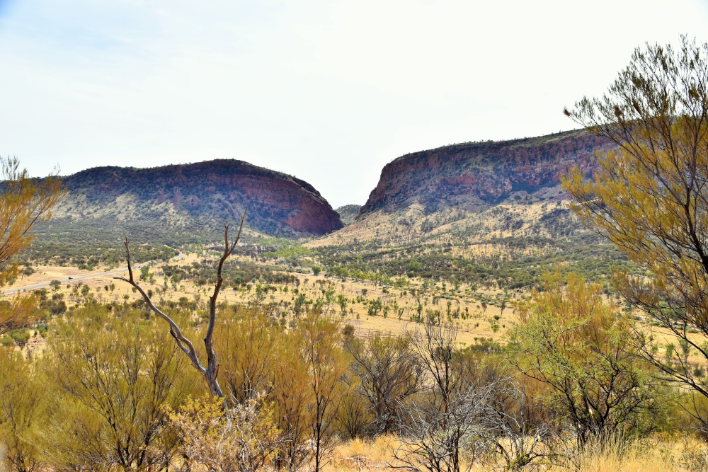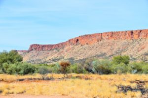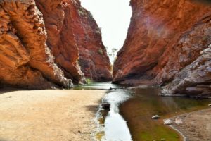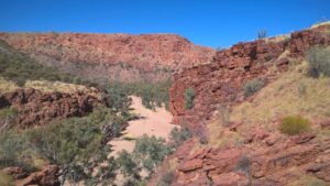 Diese und die vergangene Nacht hatten wir 2Grad, wir haben so gefroren, trotz Leggings und zwei Decken. Um 10Uhr werden wir von Jasmin und Matthias abgeholt und wir fahren in die Ost McDonalds Ranges. Eine tolle Landschaft, diese Berge und dann eine Schlucht. Wir wandern erst obenherum und dann durch die Schlucht selbst. Ich glaube, die Bilder sprechen für sich.