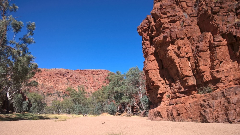 Haben uns mit Jasmin und Matthias verabredet, wir haben die zwei auf Fraser Island kennengelernt. Die beiden Studenten sind auch grad in der Stadt und wir machen zusammen einen Ausflug zum Simpson Gap. Eine wunderschöne Schlucht, wir laufen eine Stunde und haben genug Zeit zum Ratschen.