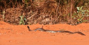 Unterwegs sehen wir unsere erste, große Schlange, eine Python. Wir fahren weiter und übernachten 20km vor Broome auf einem freien Platz bei Willie Creek.