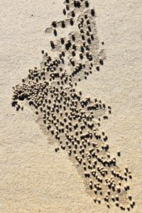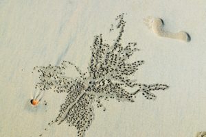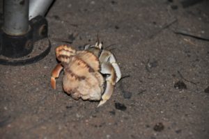 Sobald es dunkel wird, kommen hunderte von Einsiedlerkrebsen und suchen feuchte Stellen im Sand. Jetzt wissen wir auch, woher die Spuren stammen.