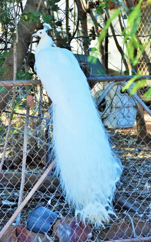 Bevor wir weiter fahren, lassen wir das Sonnenpaneel testen und tatsächlich, es ist insgesamt hinüber. Notgedrungen kaufen wir ein neues, wenn wir frei stehen, brauchen wir einen Stromlieferanten. Um 260€ ärmer geht’s auf den Northern Highway Richtung Port Hedland. Nach ungefähr 250km bemerken wir, dass die Batterie kocht! Ja, toll! Wir lassen sie abkühlen und machen Station im Sandfire Roadhouse. Hier gibt es viele Pfaue, sogar ein paar weiße!