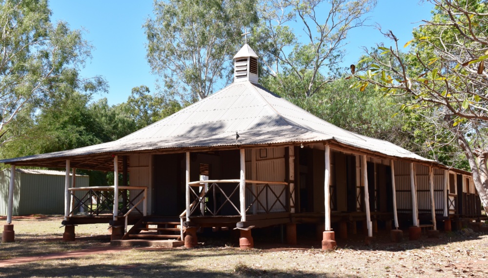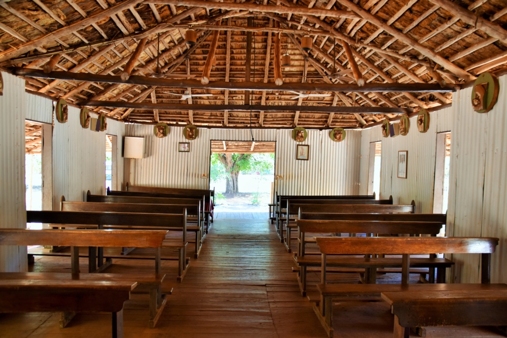 Wir kommen nicht weg, Vater und Sohn aus Berlin zeigen uns ihre Drohne und was man alles damit machen kann. Tomi ist gleich ganz begeistert. Aber wir fahren dann doch ab und machen halt in Lombadina. Eine ehemalige Missionsstation, gegründet 1892, eine Ansammlung von einigen Häusern und einer Kirche mit Sandelholzdachstuhl.