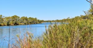 Und wir werden tatsächlich kontrolliert, ob wir eine Erlaubnis haben. Wir fahren nochmal 50km bis zum Millstream Nationalpark. Am Fortescue River können wir baden und anschließend schauen wir uns einen Campground an. Der ist ziemlich voll und hat nur noch sonnige Plätze. Ein Stück weiter südlich ist noch ein Bushcamp, dort gibt es auch eine Camp-Kitchen und es sind kaum andere Camper da.