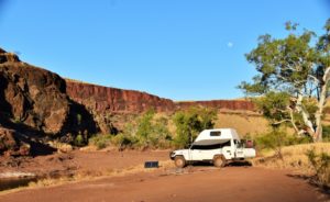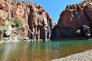 Wir verlassen den netten Platz und fahren Richtung Norden. Eine Wellblechpiste von der groben Art. Am Mt. Herbert machen wir eine kurze Wanderung und haben einen super Ausblick. Dann geht’s zum Python Pool. Ein Becken mit klarem Wasser unterhalb einer steilen Felswand. Sehr schön zum Baden.