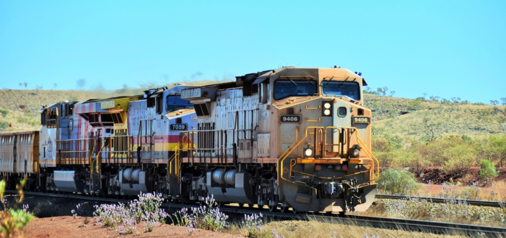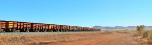 In Tom Price holten wir uns eine Genehmigung um eine Privatstraße zu fahren, die der Rio Tinto Minengesellschaft gehört. Die 110km sind zwar nicht asphaltiert, aber kaum Riffel und gut in Schuss. Es gibt fast keinen Verkehr, wir treffen keinen Roadtrain, anscheinend haben heute alle frei. Dafür kommen uns 3 Züge entgegen, einer ungefähr 2,5km lang!