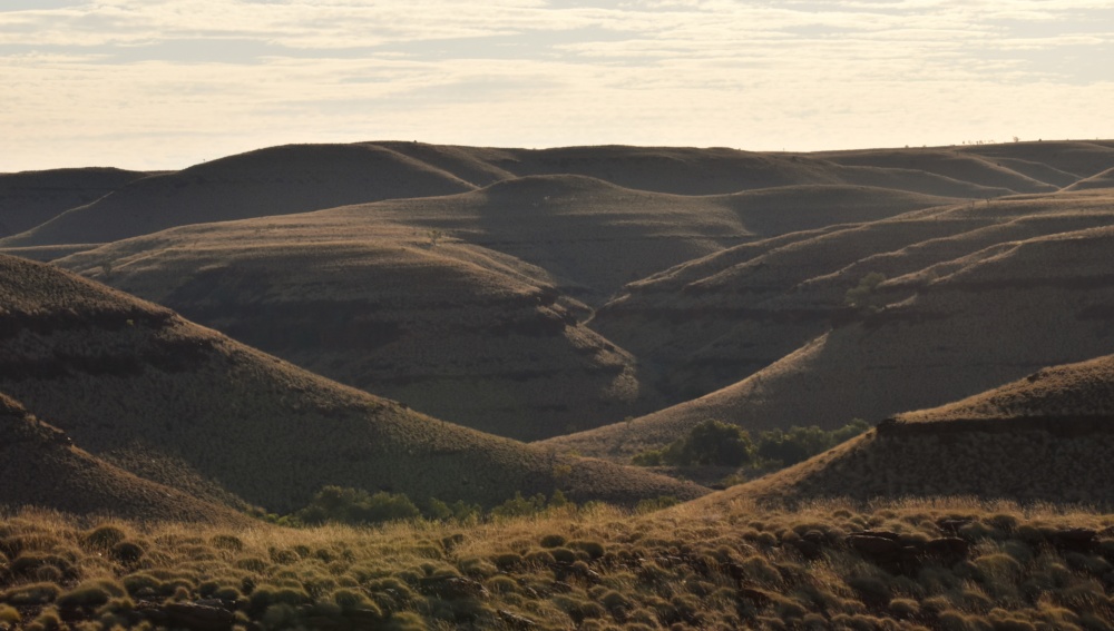 Die Stunde auf dem „Feldweg“ brauchen wir auch zurück, beim Python Pool gehen wir wieder schwimmen. Wir fahren 50km zurück und biegen dann Richtung Pannawonica ab. Die Piste ist ganz gut, auf den 100km kommen uns 4 Fahrzeuge entgegen. Das wär doch was, München – Garmisch und 4 Fahrzeuge! Es ist bewölkt, aber drückend heiß. In Pannawonica angekommen, finden wir in dem übersichtlichen Ort gleich den Campingplatz. Das sind vier Stellplätze mit Stromanschluss bei einem Sportplatz. Es gibt eine Post, eine Bücherei, einen Supermarkt und eine Kneipe. Alle Häuser schauen gleich aus, wir wundern uns. Aber dann erfahren wir, dass hier eine große Mine ist und alle, die dort arbeiten, können umsonst wohnen. Müssen nur Strom und Wasser bezahlen. Es gibt ein Schwimmbad, alle, auch wir, können es umsonst benutzen. Schwimmen ist schön, die Duschen sind geräumig und sauber.