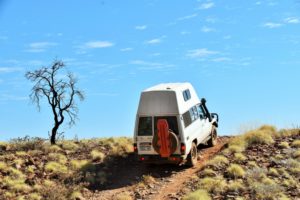 Dann ist die Piste zu Ende, bei einer Wasserstelle an einer roten Felswand finden wir einen schönen, ebenen Platz. Es gibt keinen Schatten, wir stellen die Markise auf. Es ist total einsam, wir beobachten Vögel und hoffen, dass abends ein paar Tiere zur Wasserstelle kommen. Aber kein einziges Tier kommt zum Trinken, dafür spätnachmittags 3 Autos. Die Leute schaun sich den Platz an und drehen wieder um. So bleiben wir allein und machen abends ein Lagerfeuer. Das Bier hatten wir schon um 5Uhr, wie es sich für Australien gehört.